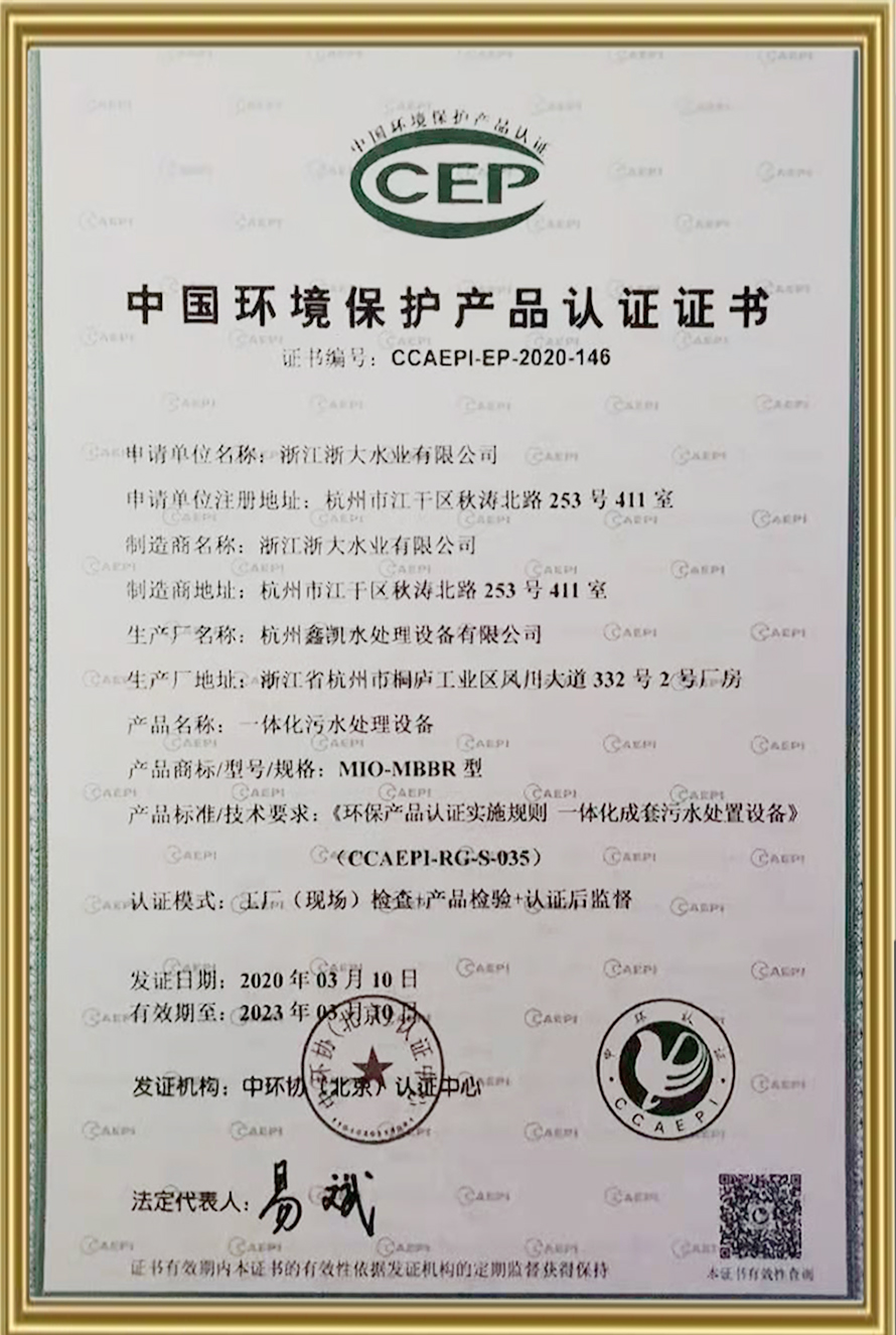 中國(guó)環(huán)境保護(hù)產(chǎn)品認(rèn)證證書